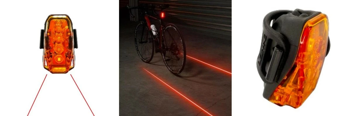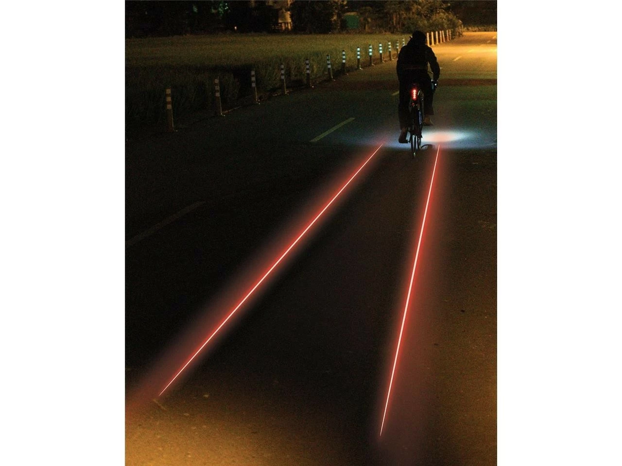 En superstark LED baklampa med 2st laserljus på sidorna för ökad säkerhet. Upp till 250 lumen med 7st ljusbilder. Uppladdning med hjälp av USB.