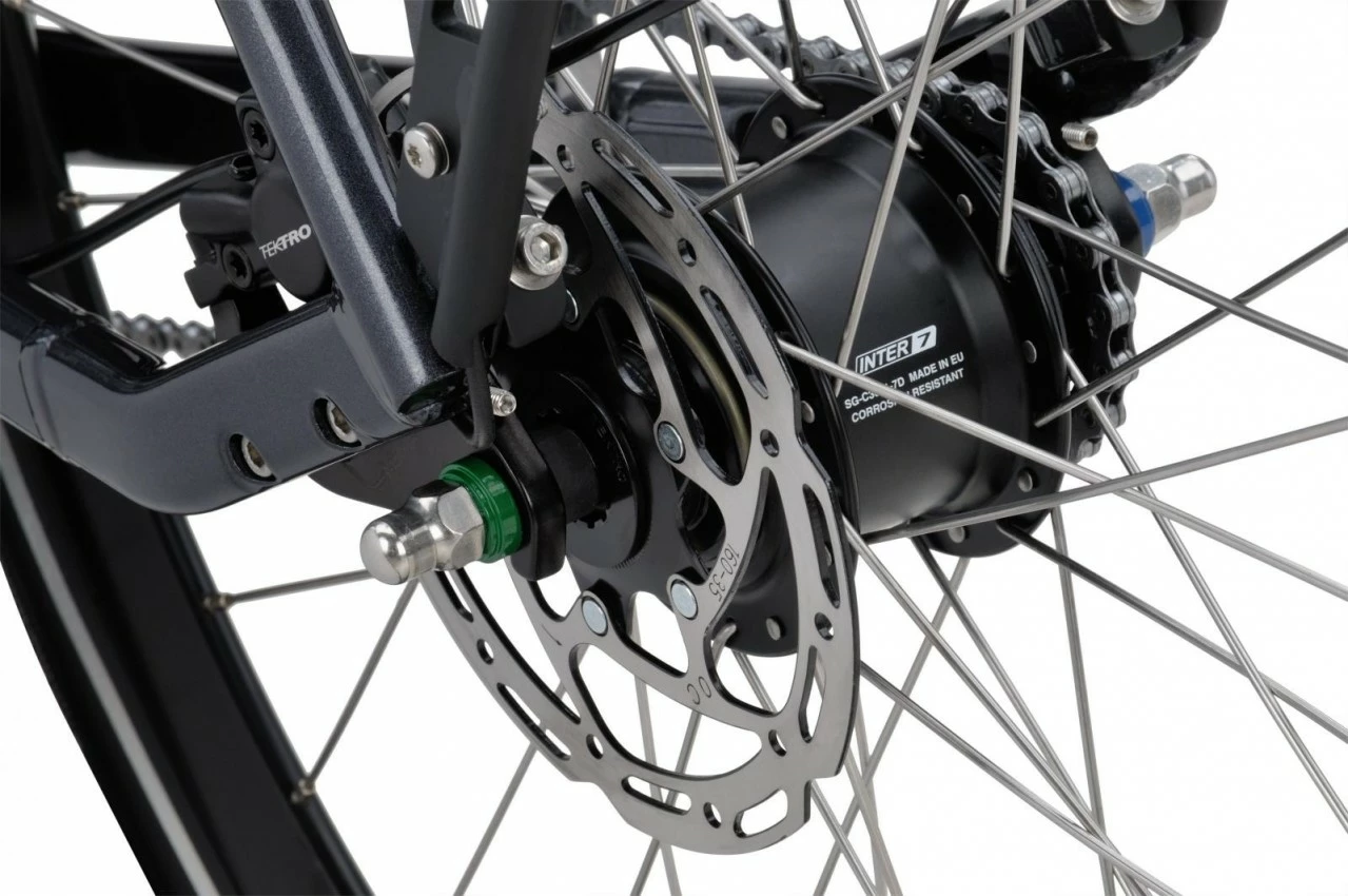 Nya Batavus Razer är utrustad med skärmar, pakethållare och belysning redan från start. Detta innebär att den är redo för vägarna i standardutförande. Pakethållaren är utrustad med Mik-fäste vilket är ett smart ”klick-system” för tillbehör som tex. Väskor och korgar, så att du enkelt kan få med dig datorn eller ombytet till jobbet. Tack vare effektiva hydrauliska skivbromsar kommer det aldrig vara något problem att få stopp, dessa är dessutom i det närmaste underhållsfria. Trots sin utrustning är denna elcykel lätt med sina 23kg.