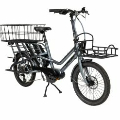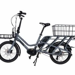 C-GO är den optimala familje- och lastcykeln som dessutom går in i cykelförrådet! Den har plats för två barnstolar bakom föraren, eller en STOR lastkorg. Den har också plats för två batterier. I original har den ett batteri på 500Wh, men kan alltså uppgraderas till 1000Wh genom att köpa till ett extra batteri, vilket ger en oöverträffad kapacitet/körsträcka på en laddning. För att cykeln inte ska bli för lång och hög har den försetts med 20” hjul, vilket gör den lätt att lasta, samt att hjulbasen är densamma som på en 28” cykel. Den är alltså inte svårare att manövrera än en ”vanlig” cykel. Ramen är extraförstärkt och testad för last upp till 200 kg. För att orka med en sån last har man monterat en stark mittmotor som levererar hela 80 Nm torque. C-GO kan alltså vara en ultimat lösning för barnfamiljen som har valt bort bil, eller budfirman som vill ha ett miljövänligt alternativ med hög kapacitet på lastförmåga och körsträcka.