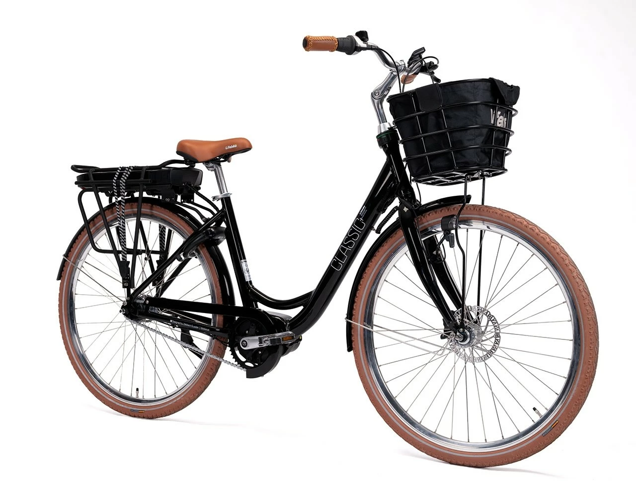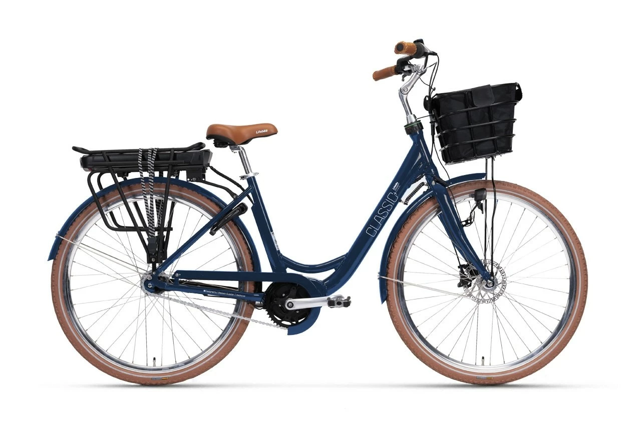 Lifebike Classic Lux har en stabil men lätt aluminiumram. Tack vare dess konstruktion och låga insteg så är det lätt att kliva av och på cykeln. Sittställningen är komfortabel och bekväm även under många timmars cykling. Cykeln är utrustad med en bred, mjuk sadel och bakåtsvept styre för en upprätt, avslappnad position. Belysningen styrs med ett knapptryck på displayen från styret och drivs av systembatteriet. Den stora framkorgen med innerväska rymmer en matkasse eller jobbdatorn. Baktill sitter det en tålig pakethållare som fungerar utmärkt till att fästa en barnsits eller sidoväskor på beroende av behov.