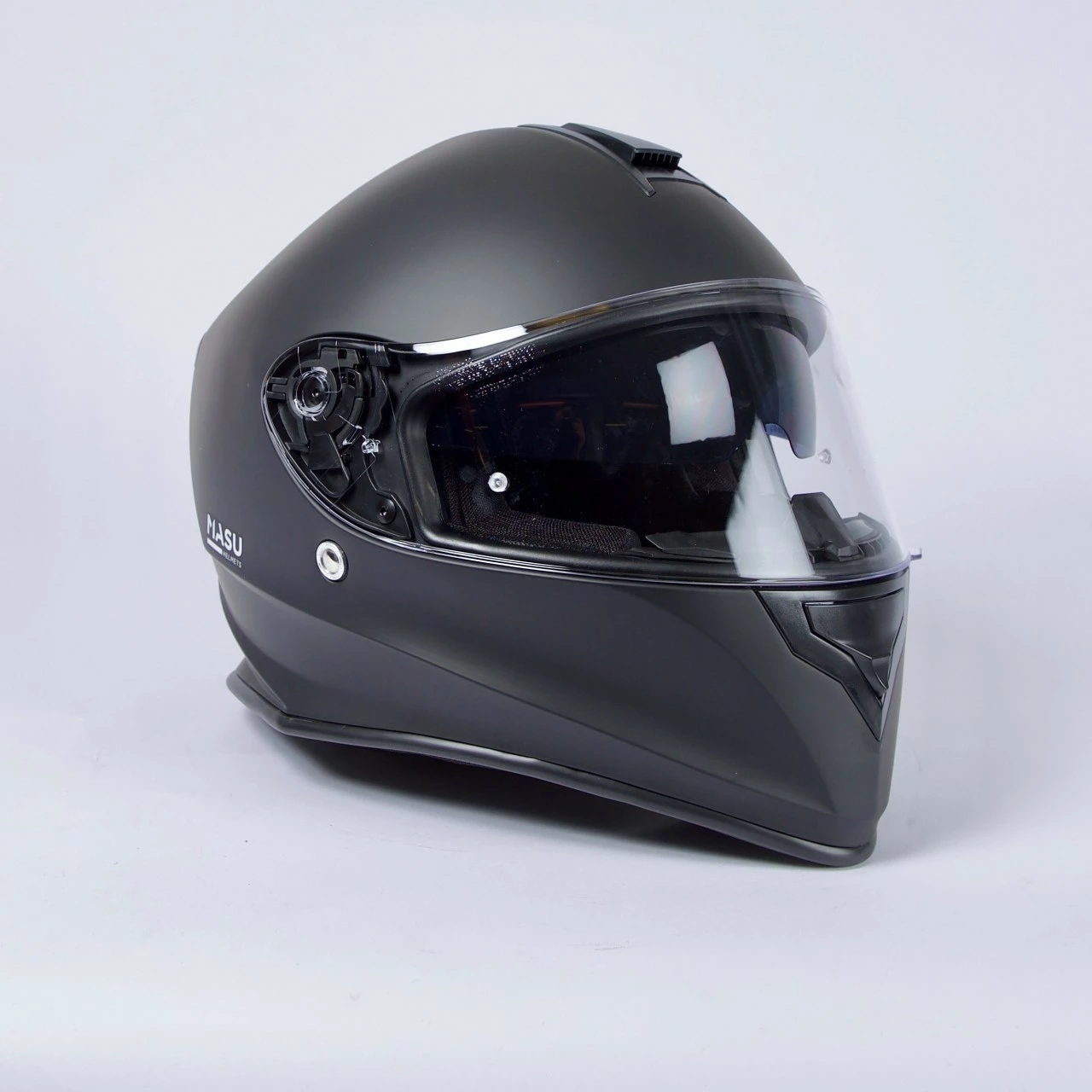 Sportig integralhjälm med skal i ABS-plast. Inbyggt solvisir för när solen står lågt på himlen. Fodret är borttagbart och tvättbart. Hjälmen är godkänd enligt ECE 22.05.