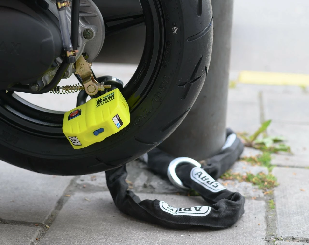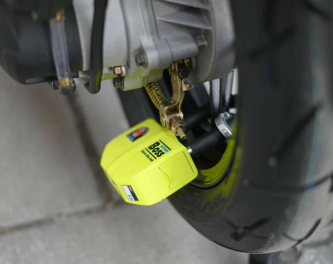 Oxfords starkaste skivbromslås någonsin med inbyggt alarm! Fungerar också utmärkt som fälglås på mopeder! Oxford Boss är klass 3 godkänt